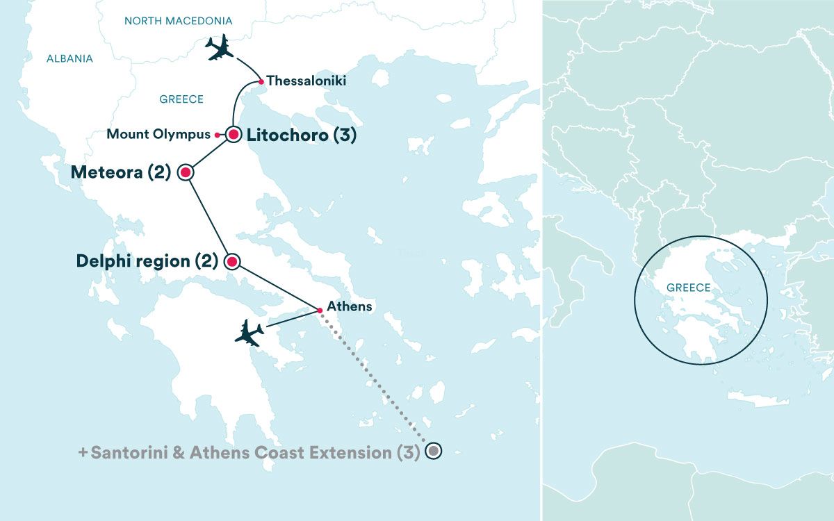 - A round-trip flight between Athens and Santorini is included in the price of the tour extension.